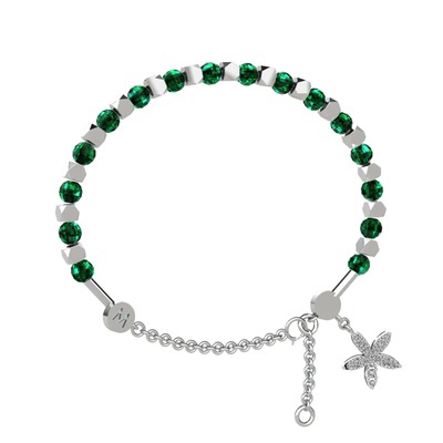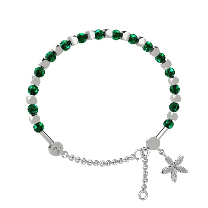 Yeşil kuvars ve swarovski 14 ayar beyaz altın bilezik
