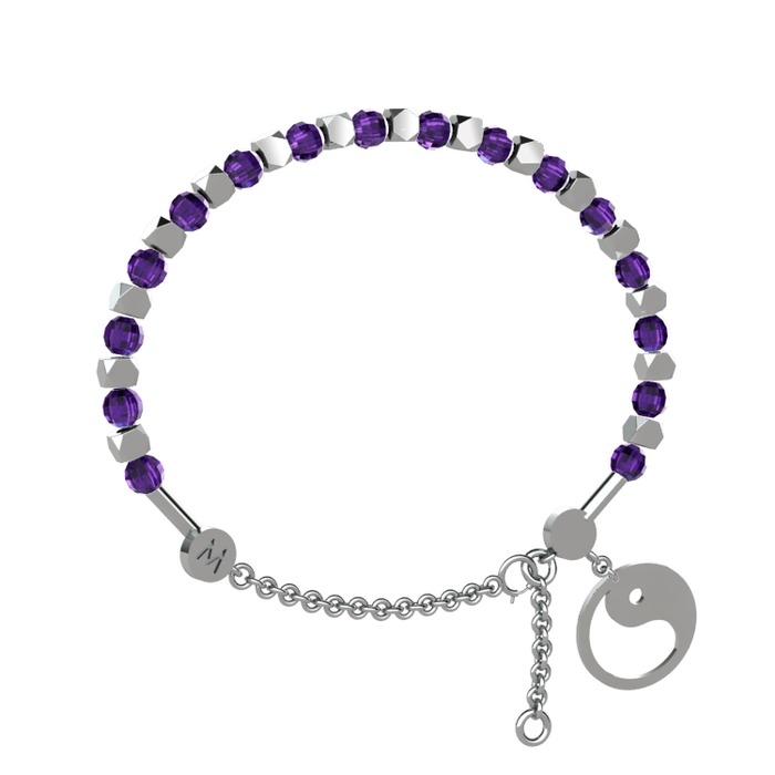 Mitra Yin Yang Bilezik - Ametist 14 ayar beyaz altın bilezik