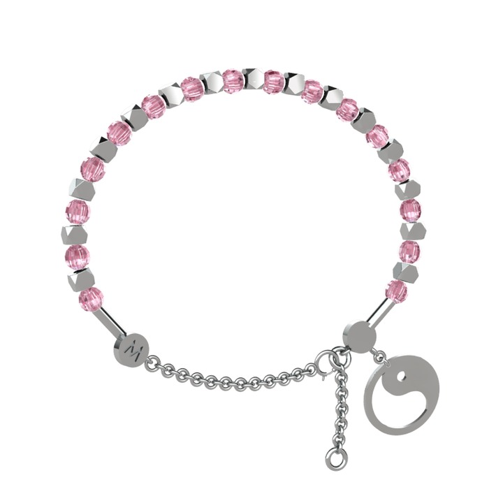 Pembe kuvars 14 ayar beyaz altın bilezik
