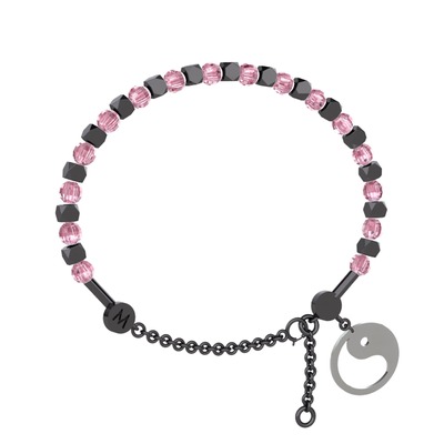 Mitra Yin Yang Bilezik - Pembe kuvars 925 ayar siyah rodyum kaplama gümüş bilezik