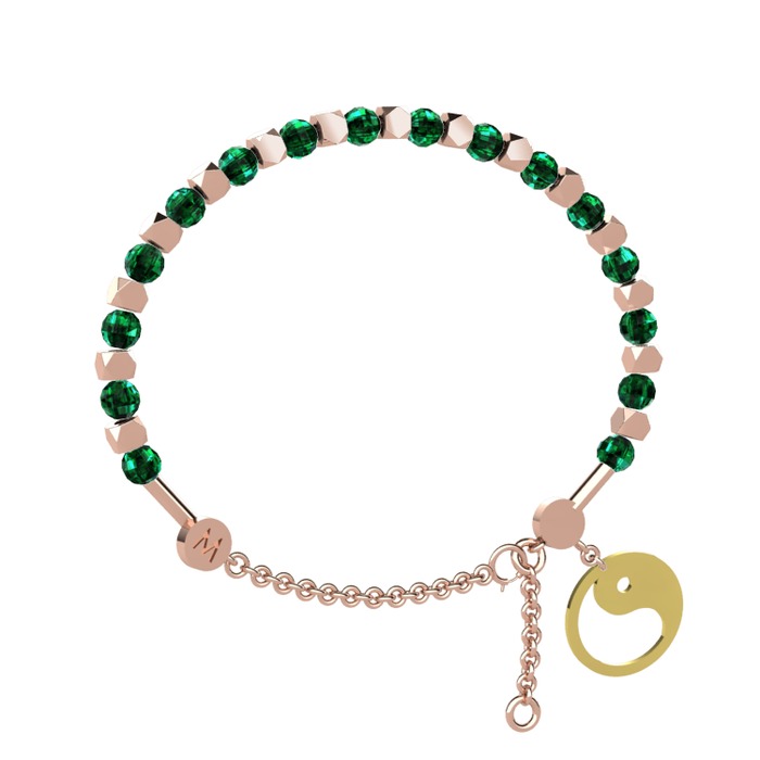 Yeşil kuvars 925 ayar rose altın kaplama gümüş bilezik