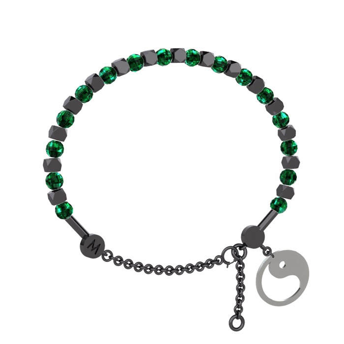 Yeşil kuvars 925 ayar siyah rodyum kaplama gümüş bilezik