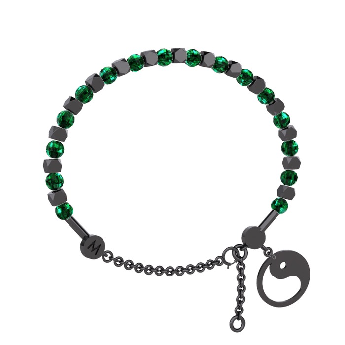 Yeşil kuvars 925 ayar siyah rodyum kaplama gümüş bilezik