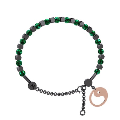 Yeşil kuvars 925 ayar siyah rodyum kaplama gümüş bilezik