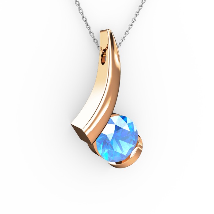 Akuamarin 18 ayar rose altın kolye (40 cm beyaz altın rolo zincir)