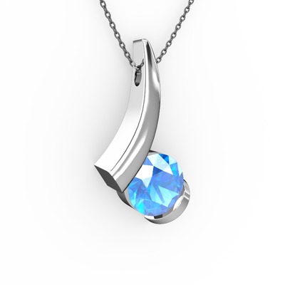 Akuamarin 8 ayar beyaz altın kolye (40 cm gümüş rolo zincir)