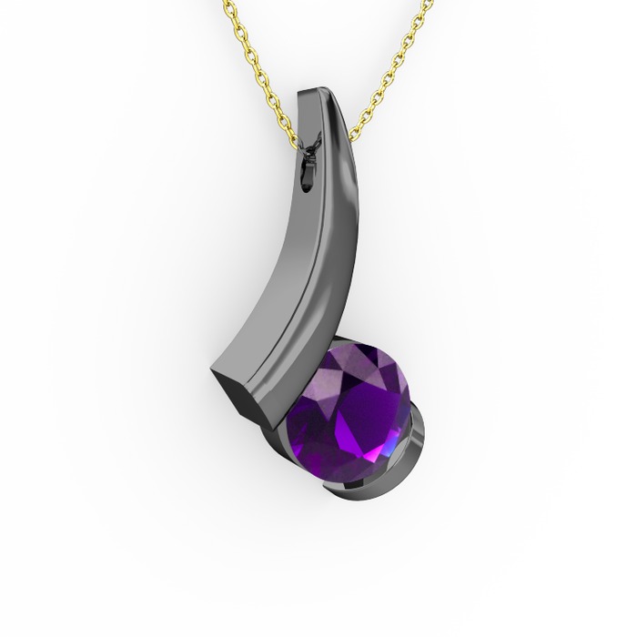 Ametist 925 ayar siyah rodyum kaplama gümüş kolye (40 cm altın rolo zincir)