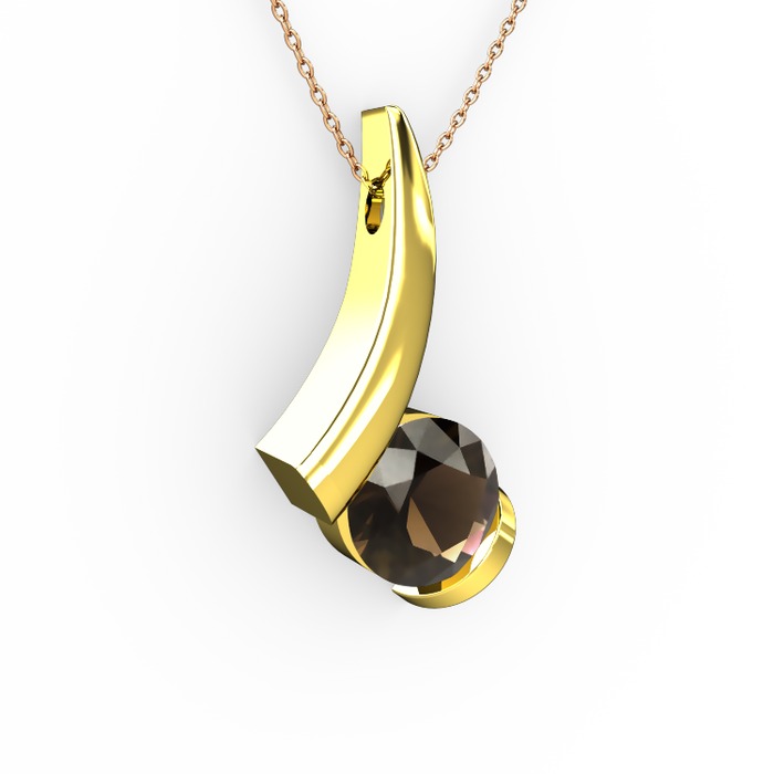 Dumanlı kuvars 18 ayar altın kolye (40 cm gümüş rolo zincir)