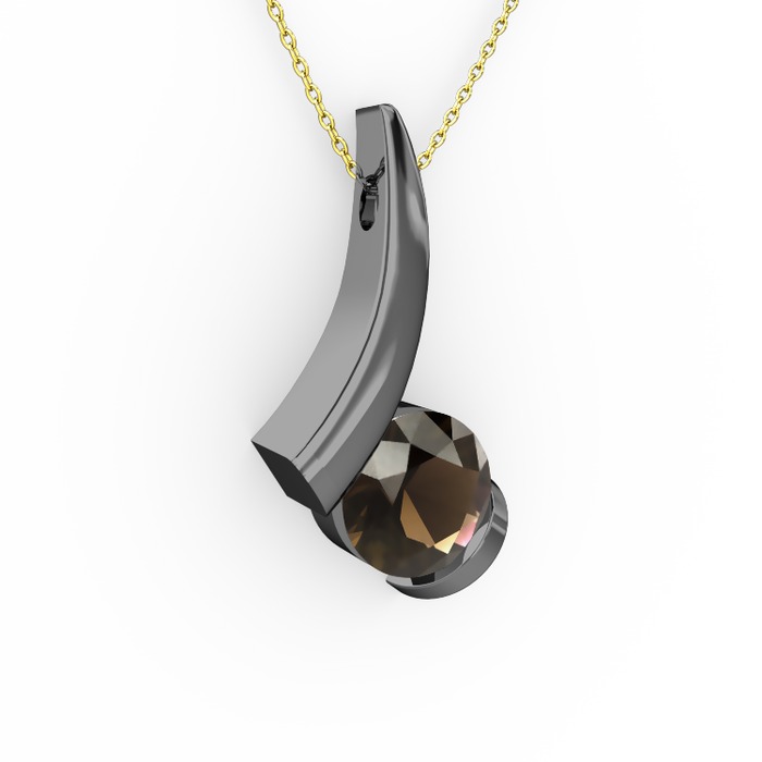 Dumanlı kuvars 925 ayar siyah rodyum kaplama gümüş kolye (40 cm altın rolo zincir)