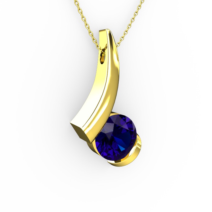 Lab safir 925 ayar altın kaplama gümüş kolye (40 cm altın rolo zincir)