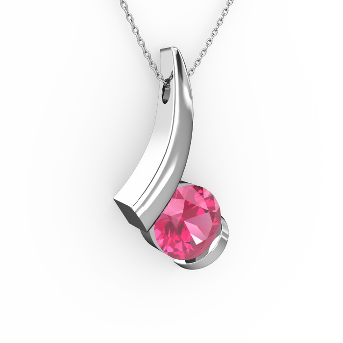 Pembe kuvars 8 ayar beyaz altın kolye (40 cm beyaz altın rolo zincir)
