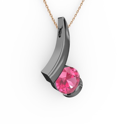 Pembe kuvars 925 ayar siyah rodyum kaplama gümüş kolye (40 cm gümüş rolo zincir)