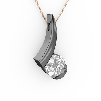 Pırlanta 925 ayar siyah rodyum kaplama gümüş kolye (0.92 karat, 40 cm rose altın rolo zincir)