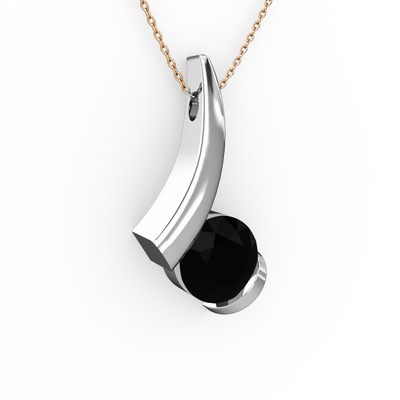 Siyah zirkon 925 ayar gümüş kolye (40 cm rose altın rolo zincir)
