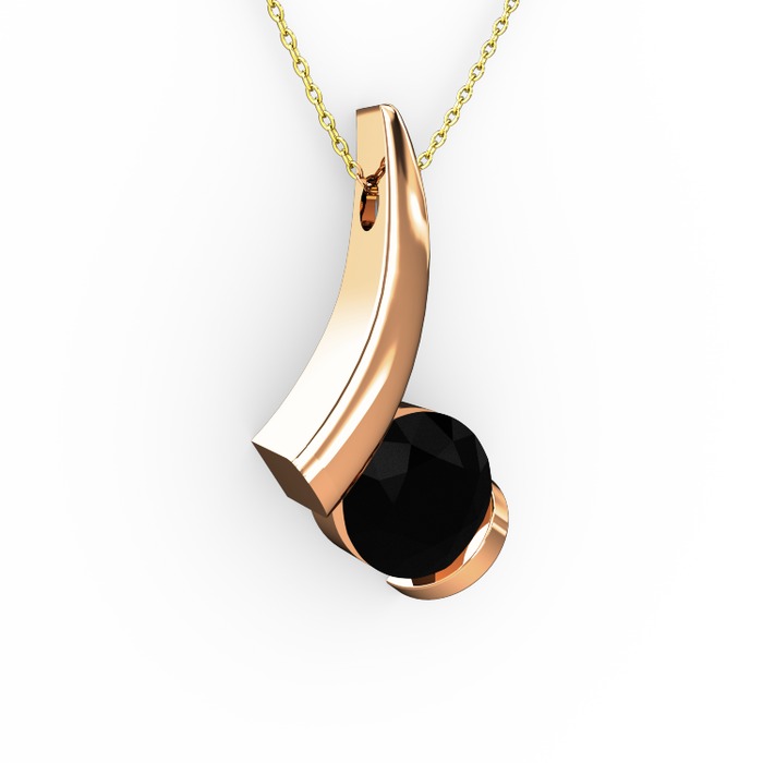 Siyah zirkon 925 ayar rose altın kaplama gümüş kolye (40 cm altın rolo zincir)