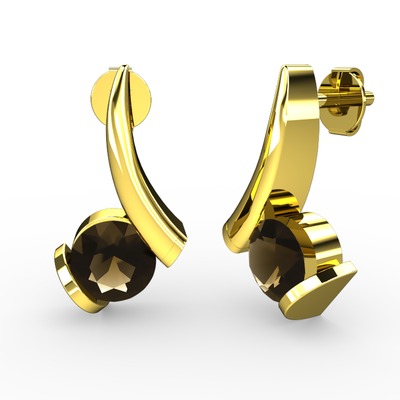 Dumanlı kuvars 925 ayar altın kaplama gümüş küpe
