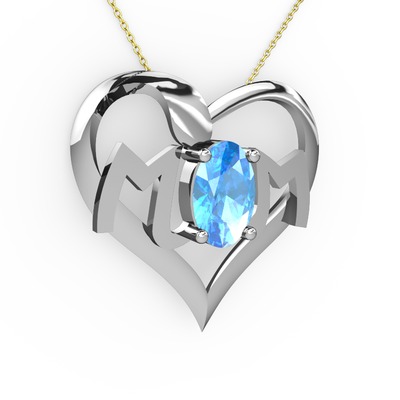 Akuamarin 18 ayar beyaz altın kolye (40 cm gümüş rolo zincir)