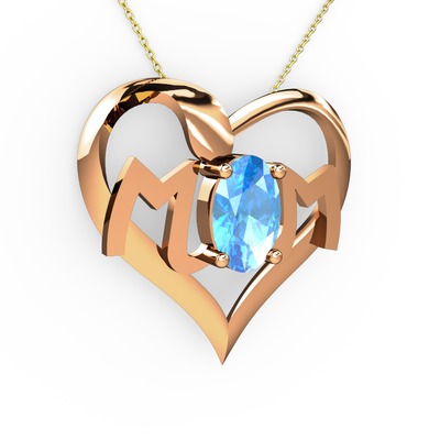 Akuamarin 18 ayar rose altın kolye (40 cm altın rolo zincir)
