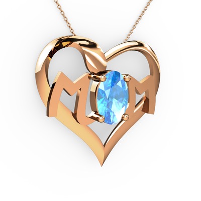 Akuamarin 8 ayar rose altın kolye (40 cm rose altın rolo zincir)