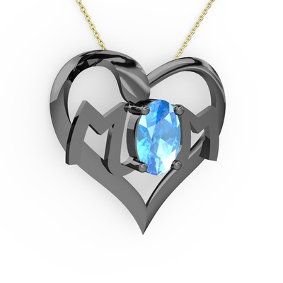 Akuamarin 925 ayar siyah rodyum kaplama gümüş kolye (40 cm altın rolo zincir)