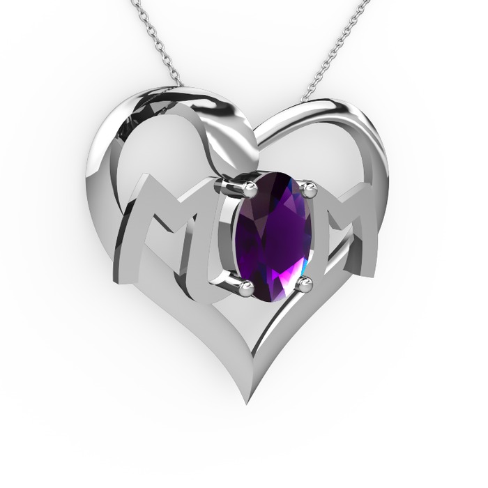 Ametist 18 ayar beyaz altın kolye (40 cm beyaz altın rolo zincir)