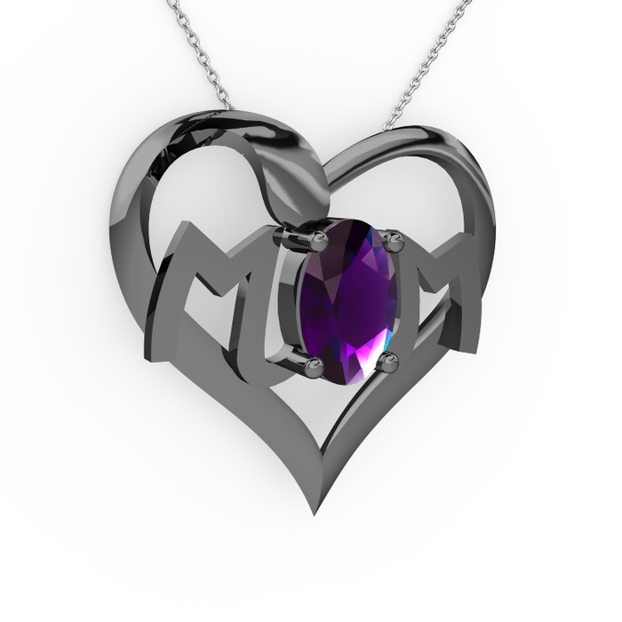 Ametist 925 ayar siyah rodyum kaplama gümüş kolye (40 cm beyaz altın rolo zincir)