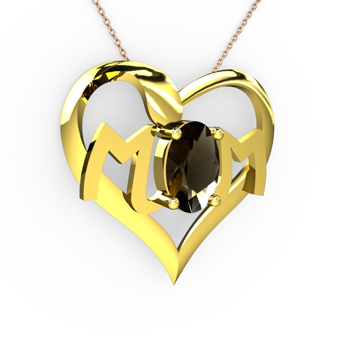 Dumanlı kuvars 14 ayar altın kolye (40 cm rose altın rolo zincir)
