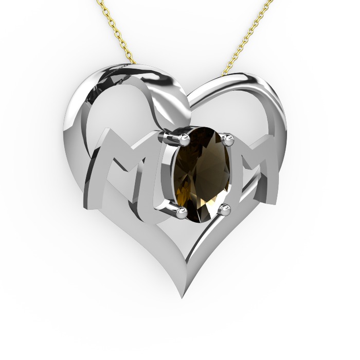 Dumanlı kuvars 18 ayar beyaz altın kolye (40 cm altın rolo zincir)