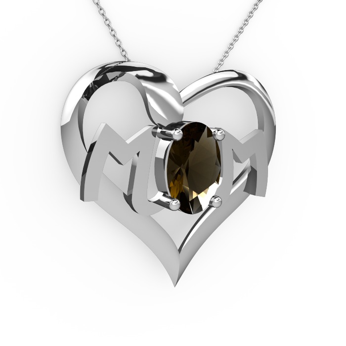 Dumanlı kuvars 8 ayar beyaz altın kolye (40 cm beyaz altın rolo zincir)