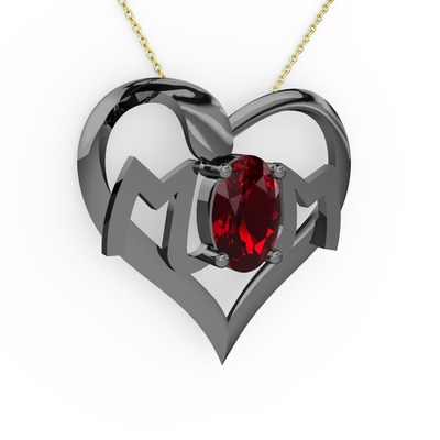 Garnet 925 ayar siyah rodyum kaplama gümüş kolye (40 cm altın rolo zincir)