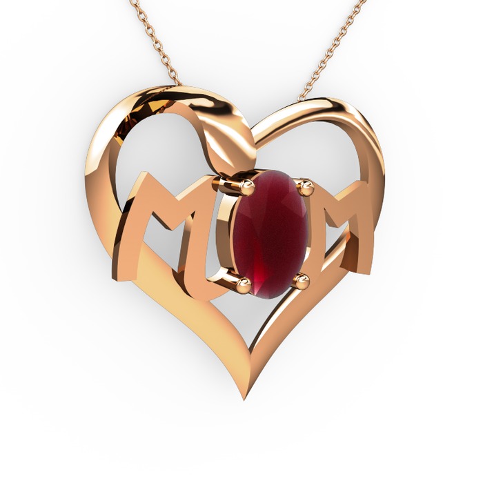 Kök yakut 14 ayar rose altın kolye (40 cm gümüş rolo zincir)
