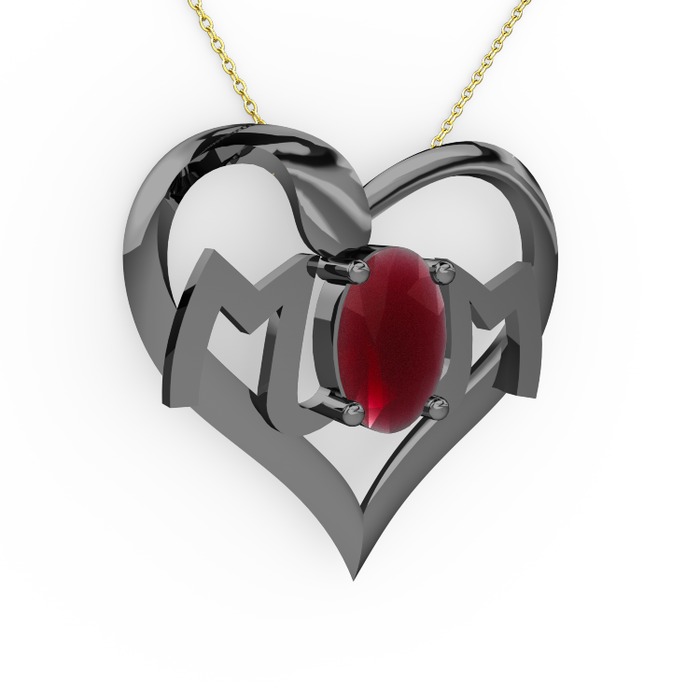 Kök yakut 925 ayar siyah rodyum kaplama gümüş kolye (40 cm altın rolo zincir)