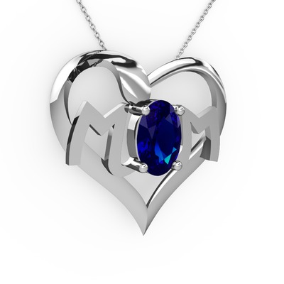 Lab safir 14 ayar beyaz altın kolye (40 cm beyaz altın rolo zincir)