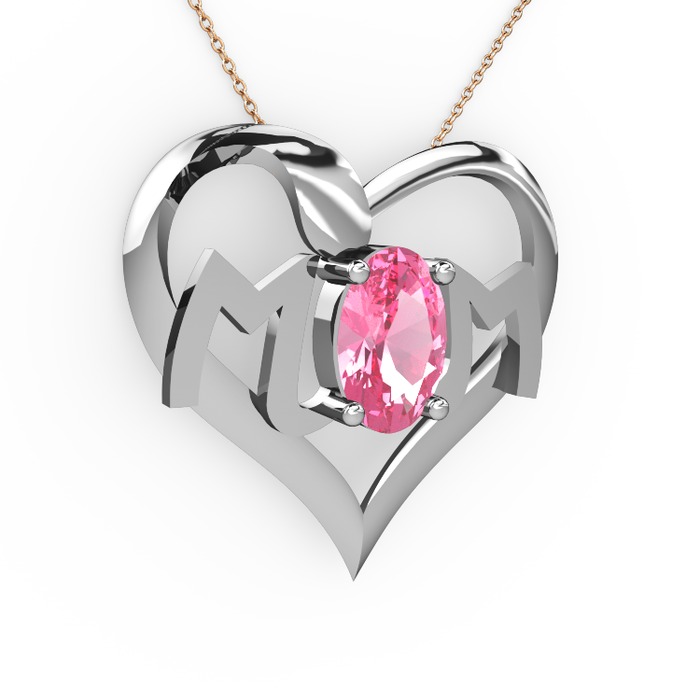 Pembe kuvars 18 ayar beyaz altın kolye (40 cm gümüş rolo zincir)