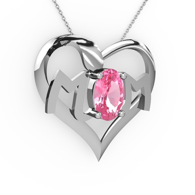 Pembe kuvars 8 ayar beyaz altın kolye (40 cm beyaz altın rolo zincir)