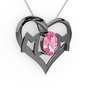 Pembe kuvars 925 ayar siyah rodyum kaplama gümüş kolye (40 cm beyaz altın rolo zincir)
