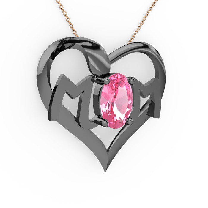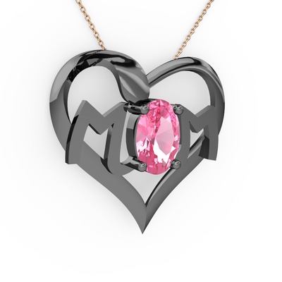 Pembe kuvars 925 ayar siyah rodyum kaplama gümüş kolye (40 cm rose altın rolo zincir)