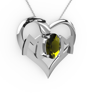 Peridot 14 ayar beyaz altın kolye (40 cm beyaz altın rolo zincir)