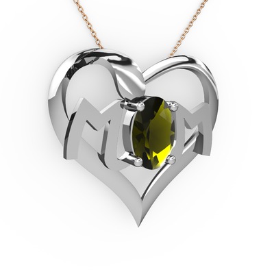 Peridot 14 ayar beyaz altın kolye (40 cm rose altın rolo zincir)