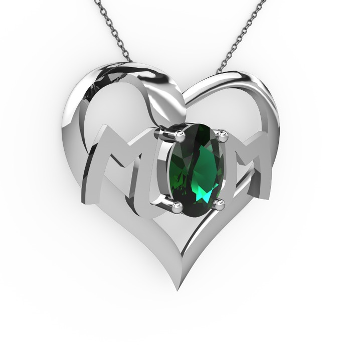 Yeşil kuvars 8 ayar beyaz altın kolye (40 cm gümüş rolo zincir)