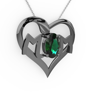 Yeşil kuvars 925 ayar siyah rodyum kaplama gümüş kolye (40 cm beyaz altın rolo zincir)