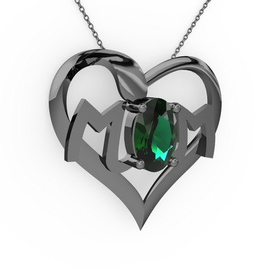 Yeşil kuvars 925 ayar siyah rodyum kaplama gümüş kolye (40 cm gümüş rolo zincir)