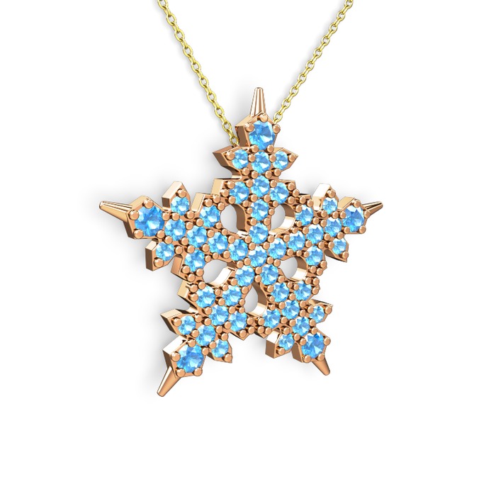 Akuamarin 925 ayar rose altın kaplama gümüş kolye (40 cm altın rolo zincir)