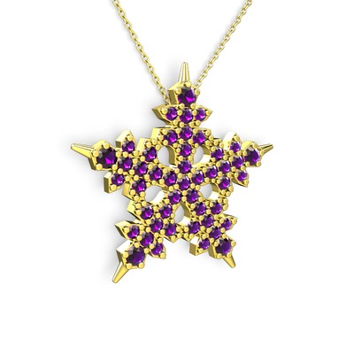 Ametist 18 ayar altın kolye (40 cm gümüş rolo zincir)
