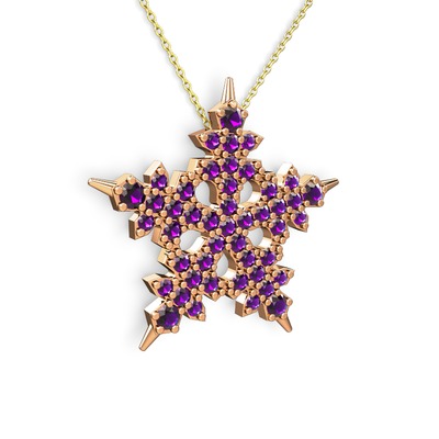 Ametist 18 ayar rose altın kolye (40 cm altın rolo zincir)