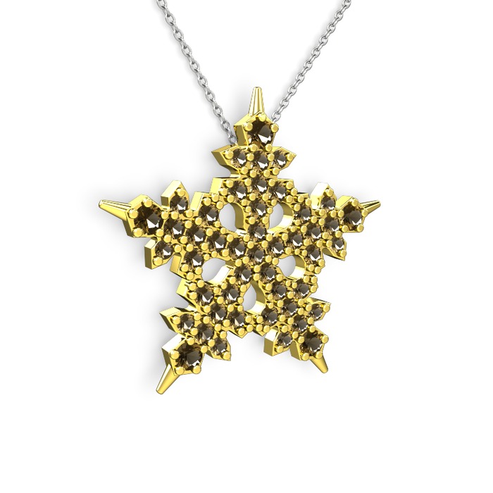 Dumanlı kuvars 14 ayar altın kolye (40 cm beyaz altın rolo zincir)