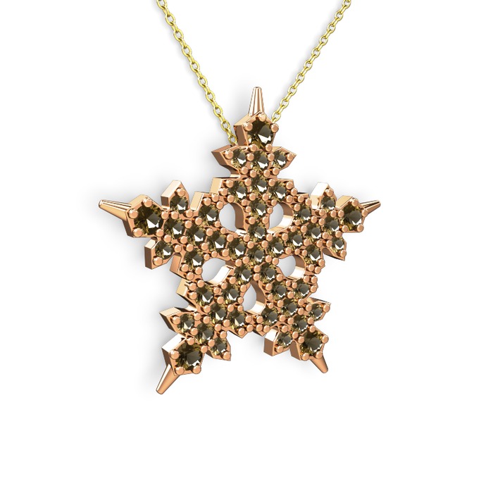 Dumanlı kuvars 925 ayar rose altın kaplama gümüş kolye (40 cm altın rolo zincir)