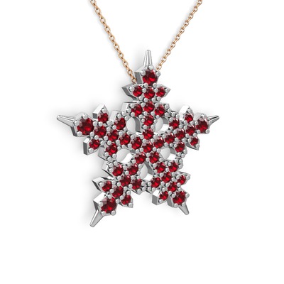 Garnet 14 ayar beyaz altın kolye (40 cm rose altın rolo zincir)
