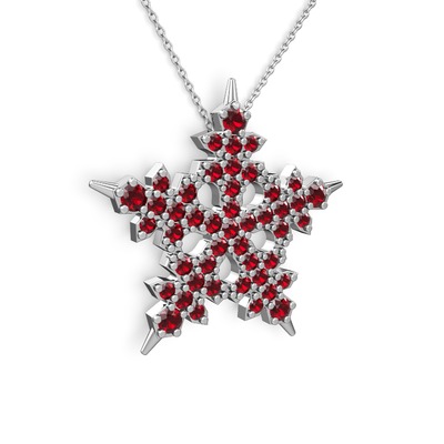 Garnet 925 ayar gümüş kolye (40 cm beyaz altın rolo zincir)