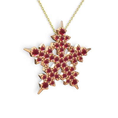 Kök yakut 14 ayar rose altın kolye (40 cm altın rolo zincir)